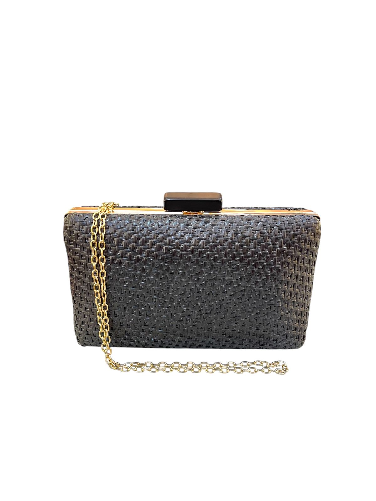 Bolsa retângular tressê preta, elegante e rica em detalhes. Fecho delicado. Luxuosa e ainda cabe perfeitamente celular, chaves e aquele batom pra retocar a make!