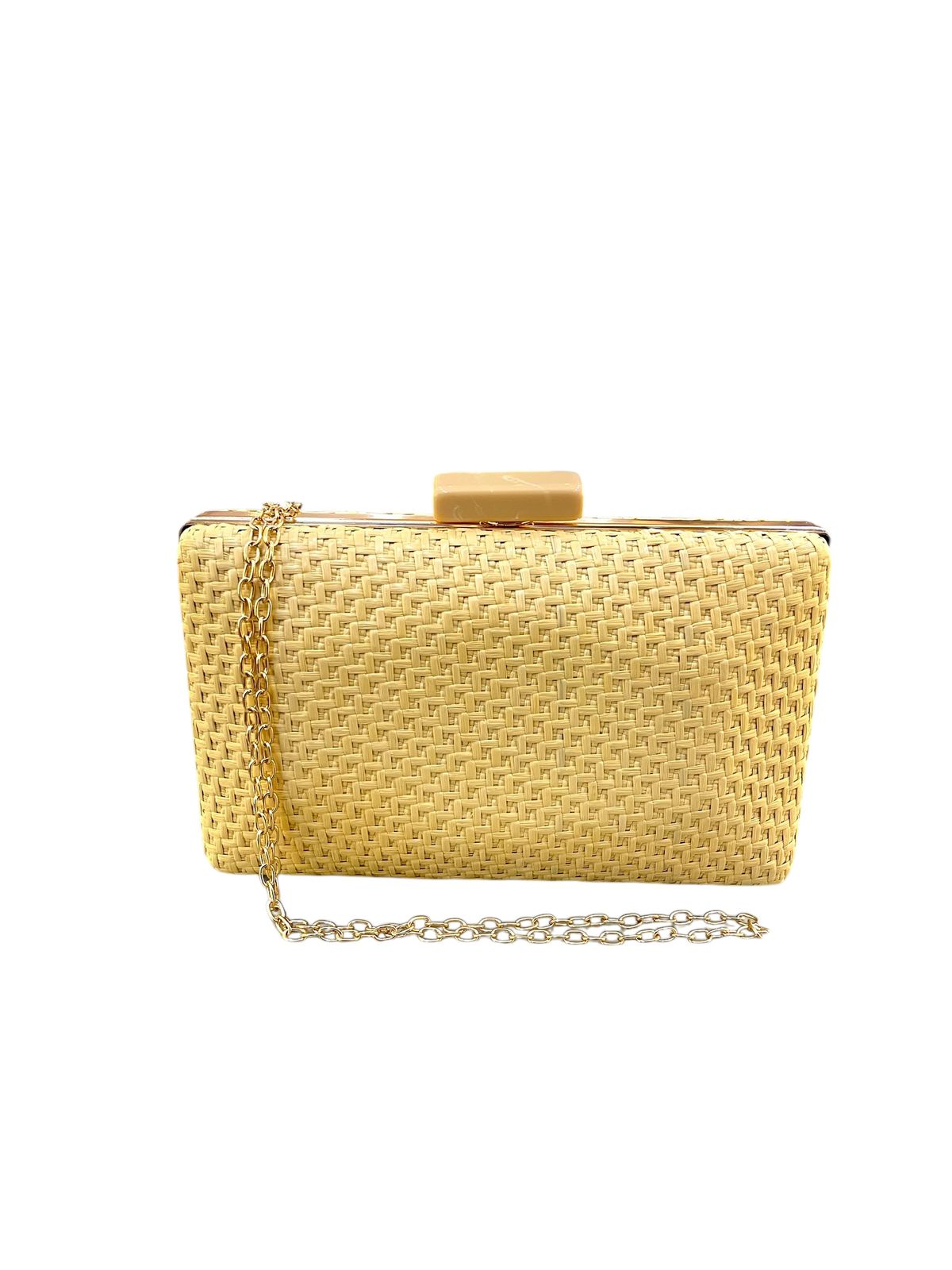 Bolsa Retângular Tressê Dourada, elegante e rica em detalhes. Fecho delicado. Luxuosa e ainda cabe perfeitamente celular, chaves e aquele batom pra retocar a make!